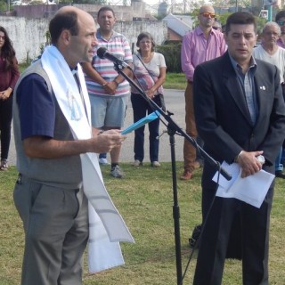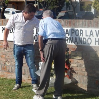 Se descubrió una placa con el objetivo de enaltecer la libertad y la democracia, se colocaron ofrendas florales ,y el cura párroco Javier Fortunato invocó el motivo de la fecha a través de una oración.