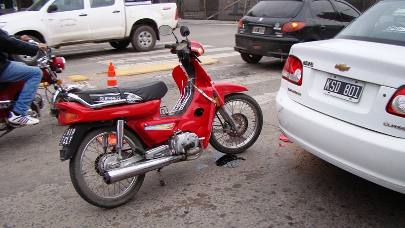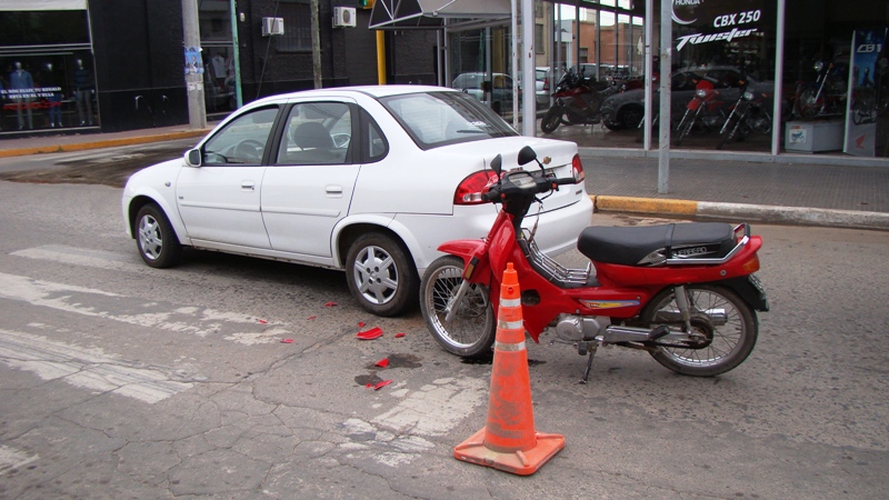 Según testigos, ambos rodados circulaban por la avenida, en dirección al Cristo de la hermandad, el automóvil frena en los semáforos y el conductor de la motocicleta no lo percibe. En consecuencia, este último impacta contra el Chevrolet y cae a la cinta asfáltica, debiendo ser trasladado al nosocomio local.
