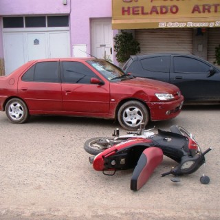 Según testigos, el Peugeot se encontraba estacionado y en momentos en que avanzaba para circular por Santiago H. Pérez, es cuando choca con la moto que transitaba en la misma dirección.