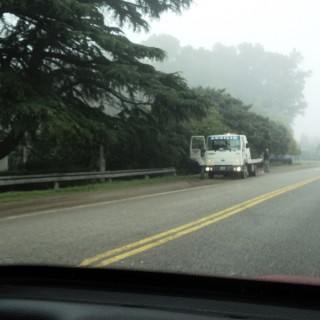 Al parecer, debido a la espesa niebla, el conductor no logra visualizar la curva y la toma a alta velocidad, mordiendo la banquina, por lo cual se despista y finaliza impactando con una de las alcantarillas.