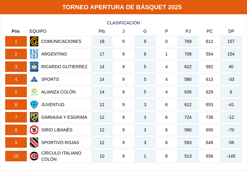 Entre este viernes y domingo se inicia la segunda rueda del Torneo Apertura de primera división que organiza la Asociación Pergaminense de Básquet, con la disputa de la décima fecha.