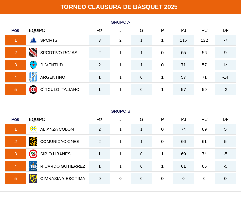 La segunda fecha del Torneo Clausura que organiza la Asociación Pergaminense de Básquet se inició el viernes con el triunfo de Sportivo Rojas como visitante de Sports por 56-65.