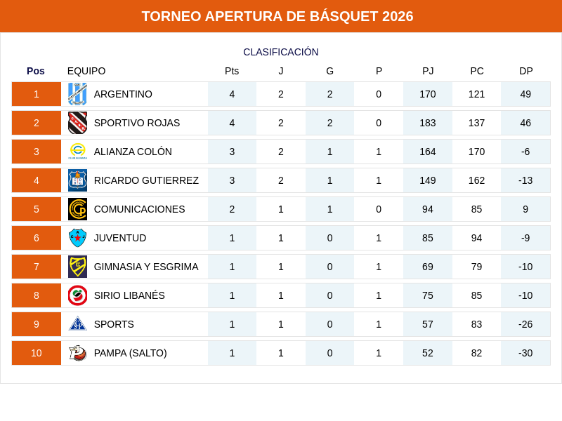 Simultáneamente, Sportivo Rojas dio el golpe en Colón al superar con claridad al siempre difícil Alianza por 85-101 para mantenerse en la cima del certamen junto con Argentino.