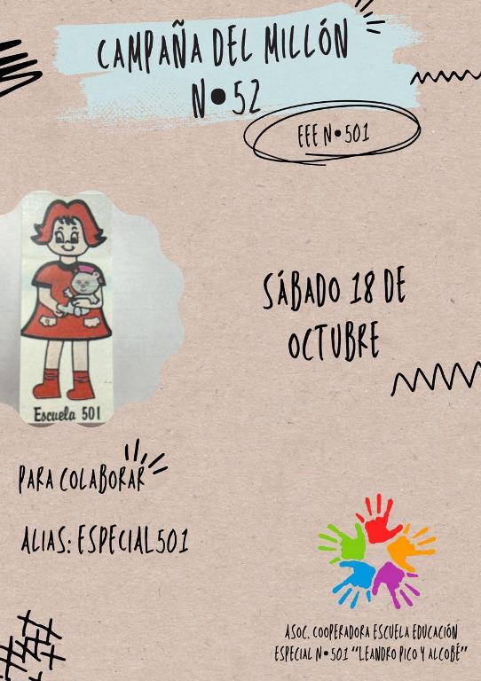 Este sábado 18 de octubre, la Escuela de Educación Especial Nº 501 “Leandro Picoy Alcobé” de Arrecifes realizará la 52ª edición de su tradicional Campaña del Millón.
