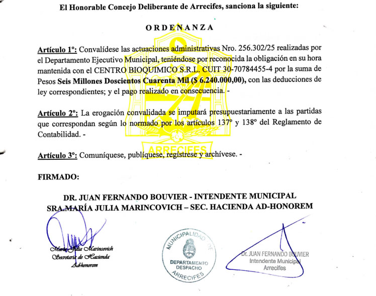 Esta novedad se conoció a partir de un proyecto de ordenanza presentado por el Departamento Ejecutivo en el Concejo Deliberante este jueves con la firma oficial de Marincovich en ese cargo.