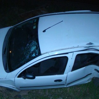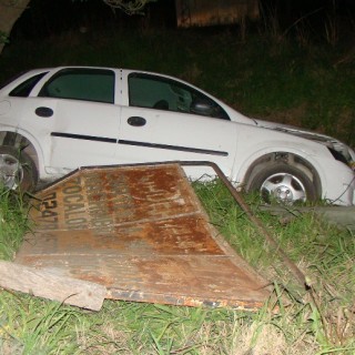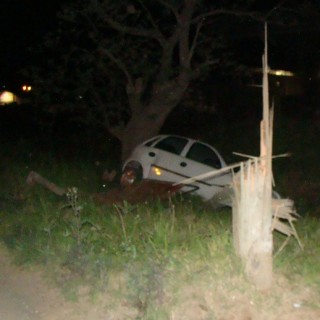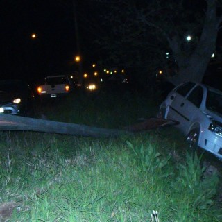 Un Chevrolet Corsa conducido por Matías Rea se salió de la cinta asfáltica, golpeó fuertemente contra un poste de luz, que derribó, y terminó en la cuneta contra un árbol.