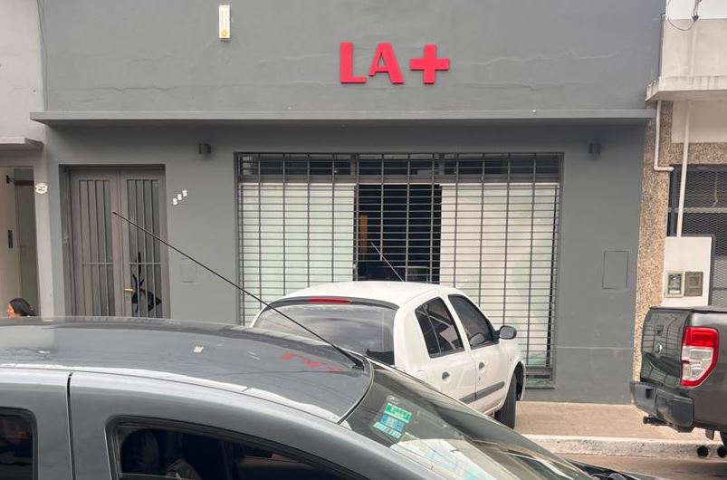 Producto del golpe, el Clío (sin ocupantes) salió despedido hacia la vereda de la izquierda y también impactó con el frente de otro negocio, en este caso de venta de zapatillas, provocando la rotura de otra vidriera.
