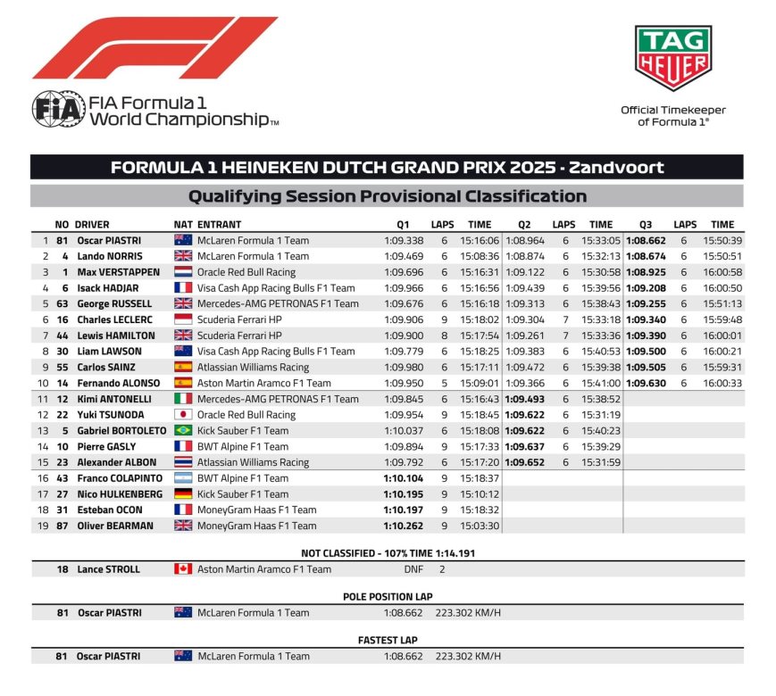 Oscar Piastri (McLaren) se quedó con la pole con uno de los McLaren que siguen dominando claramente la categoría en esta temporada.