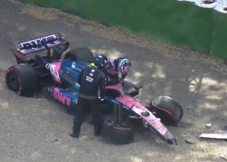 El piloto argentino, que se ubicaba 14º, salió a intentar mejorar su tiempo en los últimos minutos, para asegurarse el pase a la segunda clasificación, pero se despistó y se pegó contra la contención de pista, rompiendo seriamente su Alpine.