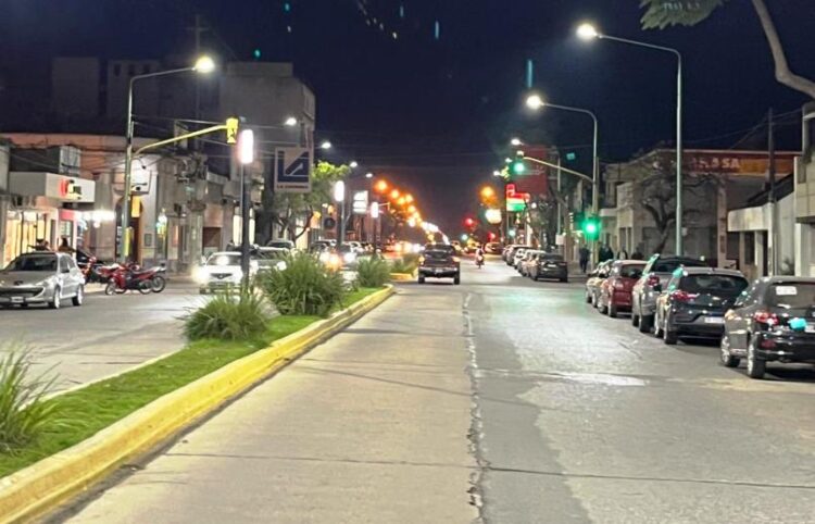 Personal de Servicios Públicos de la Municipalidad de Arrecifes está llevando a cabo un proyecto de mejoramiento lumínico en Avenida Merlassino, reemplazando las antiguas lámparas por luces LED blancas.