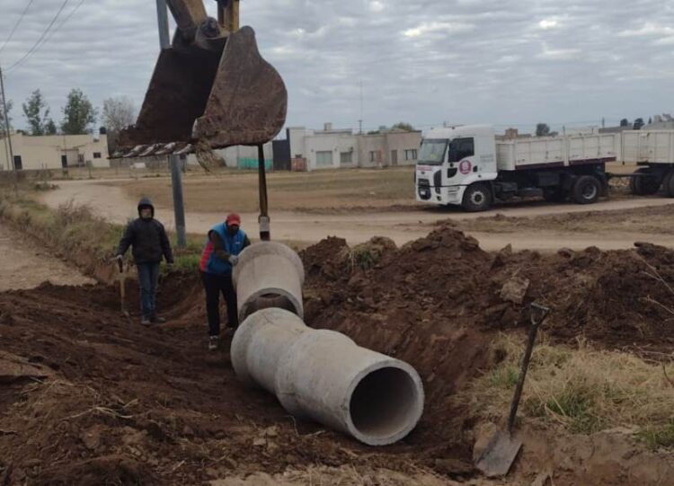 Personal del área de Servicios Públicos de la Municipalidad de Arrecifes está llevando a cabo la colocación de 20 tubos en calle San Pedro, lo que permitirá la apertura de esta arteria, cerrada al tránsito durante mucho tiempo.