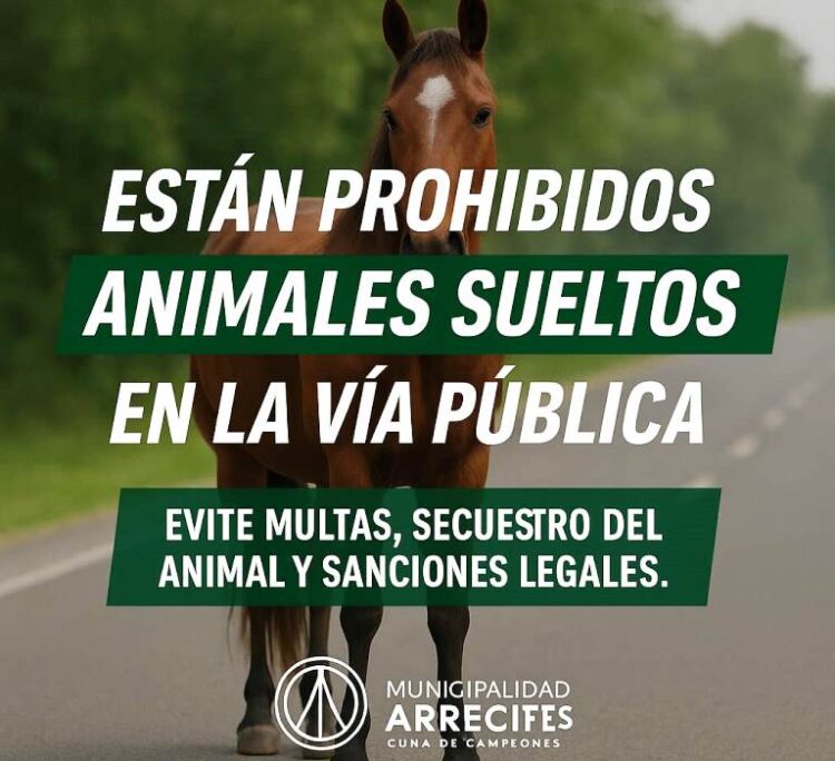 El Juzgado de Faltas Municipal de Arrecifes recuerda a toda la comunidad que se encuentra terminantemente prohibido dejar animales sueltos en la vía pública.
