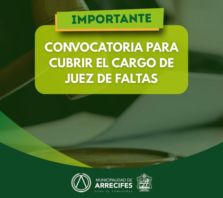 La Municipalidad de Arrecifes informa que se encuentra abierta la inscripción para cubrir el cargo de Juez de Faltas del Partido de Arrecifes.