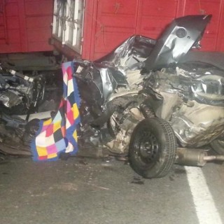 Un violentísimo impacto entre un VW Gol Trend y un camión Mercedes Benz, terminó con el vehículo de menor porte literalmente destrozado debajo del camión con acoplado.