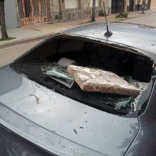 Al auto le hicieron explotar la luneta con un enorme baldosón y luego lo prendieron fuego en la parte del motor. El vehículo no sirve más.