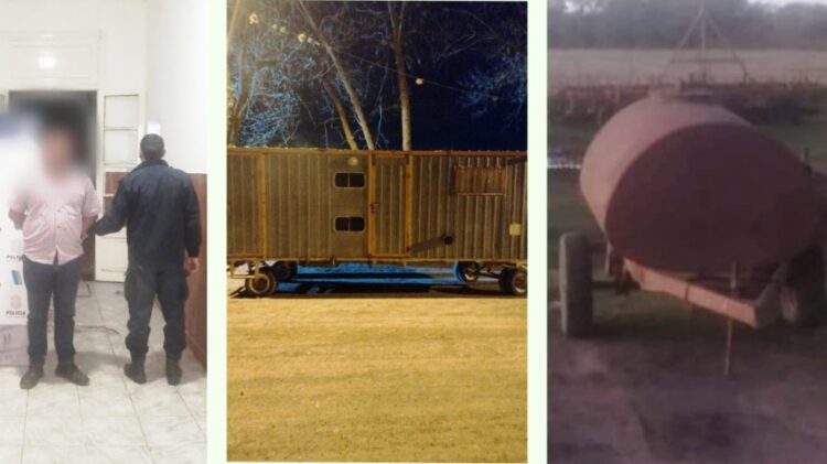 En el campo allanado se secuestró una casilla marca Sol, blanca y amarilla, que había sido sustraída en General Pinto y denunciada por Leonardo Barneix. Además, se incautó otra casilla rodante, antigua, galvanizada, robada en Cuartel VII (Morse) de Junín; hecho denunciado por Jonatan Ariel Gaynor Riebelles.