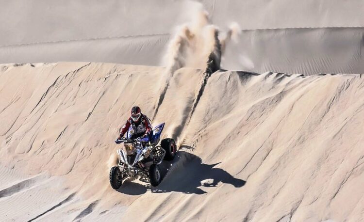 Dino Di Palma (Yamaha Raptor 700) ganó la quinta etapa en Cuatriciclos Q1 y marcha tercero en la general, a 59 minutos del puntero. El hijo de Patricio perdió mucho tiempo producto de distintos inconvenientes: perderse por su inexperiencia, rotura del acelerador y un fuerte golpe sufrido el domingo. No obstante ello, va rapidísimo y por eso se ubica tercero.