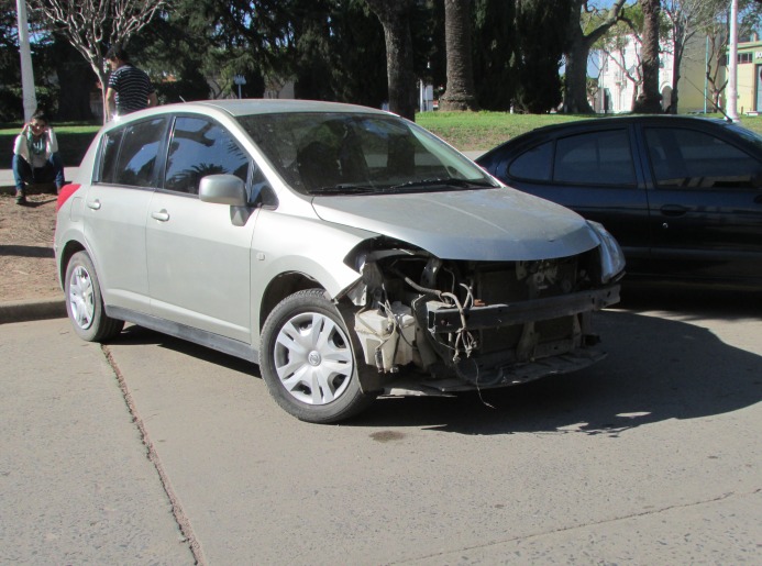 El otro choque se produjo en calle España frente a la Escuela Nº 1. Allí, según contó el Chino Nuñez para “El Colador” (Radio Zero 100.3), un auto estacionado a 45 grados sobre Plaza Mitre fue chocado violentamente por un hombre circulaba en una moto tipo 110 cc. Al vehículo, un Nissan Tiida, le arrancó el paragolpes. El hombre resultó golpeado y fue trasladado al Hospital.