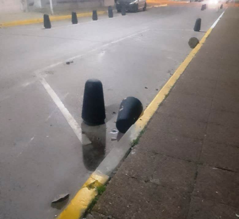 Ahora pintados de negro, estos objeto de cemento pegados sobre el asfalto se tornan más difíciles de visualizar en horas de la noche y en días de lluvia. Siguen siendo embestidos por vehículos, dañando autos y motos, y rompiéndose los propios bolardos.
