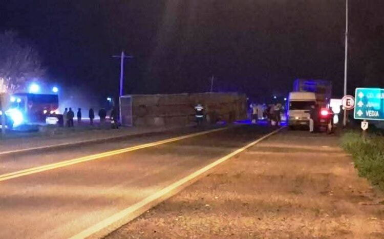 Un camión que transportaba jaulas con pollos volcó el último miércoles en ruta 7, sobre el acceso Elguea Román de Chacabuco. A su propietario, la desgracia de sufrir el accidente le tuvo que sumar que le robaron toda la carga, en una triste costumbre argentina de delinquir sin pruritos ni consecuencias.