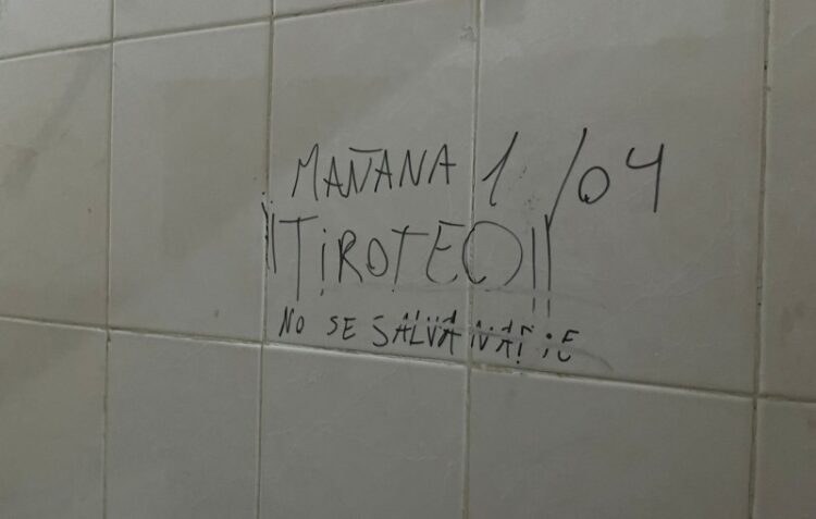 Las amenazas anónimas vienen generando alarma en la comunidad educativa de varias provincias argentinas. La frase “Mañana tiroteo”, en algunos casos acompañada de fechas específicas, fue encontrada escrita en baños y paredes de distintas escuelas.