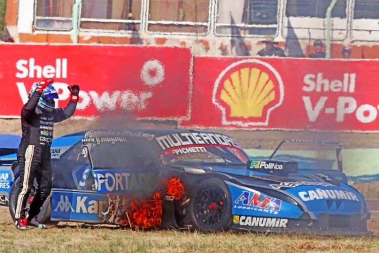 El arrecifeño debió abandonar en la cuarta vuelta al tomar fuego imprevistamente su Chevy, de la que se pudo bajar a tiempo.