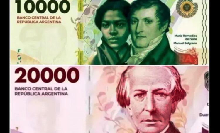 El diseño seguirá el formato de próceres argentinos. El de $10.000 tendrá en sus márgenes una imagen de Manuel Belgrano y otra de María Remedios del Valle, heroína de la Guerra de la Independencia. El ejemplar de $20.000 llevará la imagen de Juan Bautista Alberdi.
