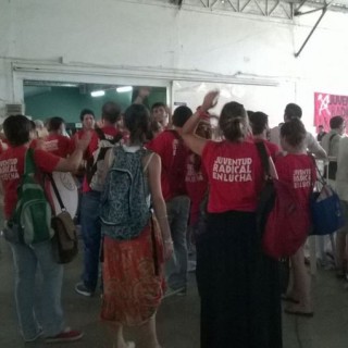 En un clima muy caliente, con airados insultos entre los dos sectores, una multitud de militantes abandonó el lugar mientras hacía uso de la palabra Camila Ríos, de Juventud Radical en Lucha, en contra del acuerdo con el Pro.
