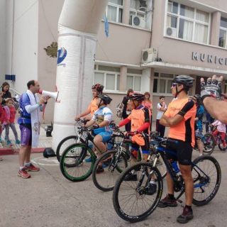 Luego de completar los trámites de inscripción y desayunar en el Club Náutico, los ciclistas se dirigieron a la Plaza Mitre, donde se realizó la largada oficial, a cargo del intendente Javier Olaeta y el cura párroco (vestido de ciclista con estola) Javier Fortunato. Y con el secretario de Seguridad municipal, José María Tenorio, como protagonista de haber sido el impulsor de esta idea, teniendo en cuenta que es un entusiasta cultor de la actividad ciclística.