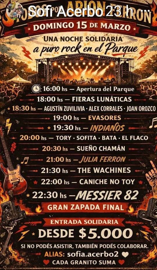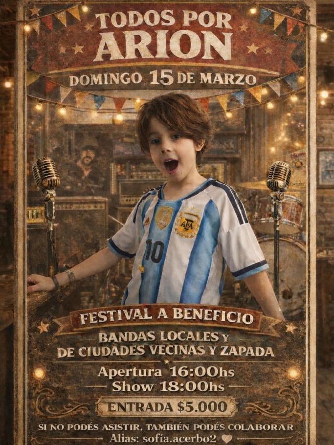 Para todas aquellas personas que deseen colaborar, pueden pedir su entrada; las mismas ya se encuentran disponibles. Cada granito suma. Tenemos que llenar el festival por Arion y su familia. Y no dudamos de que va a ser así.
