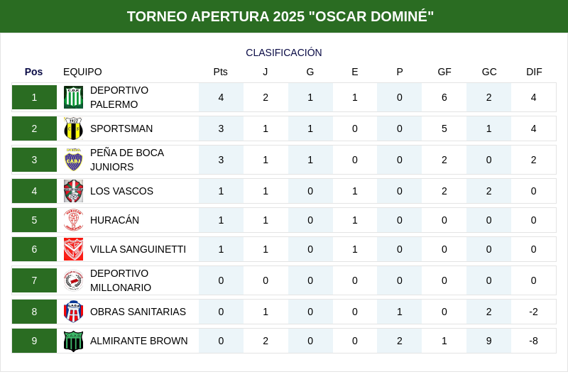 La segunda fecha del Apertura se inició el pasado viernes con el triunfo de Deportivo Palermo sobre Almirante Brown por 4 a 0.