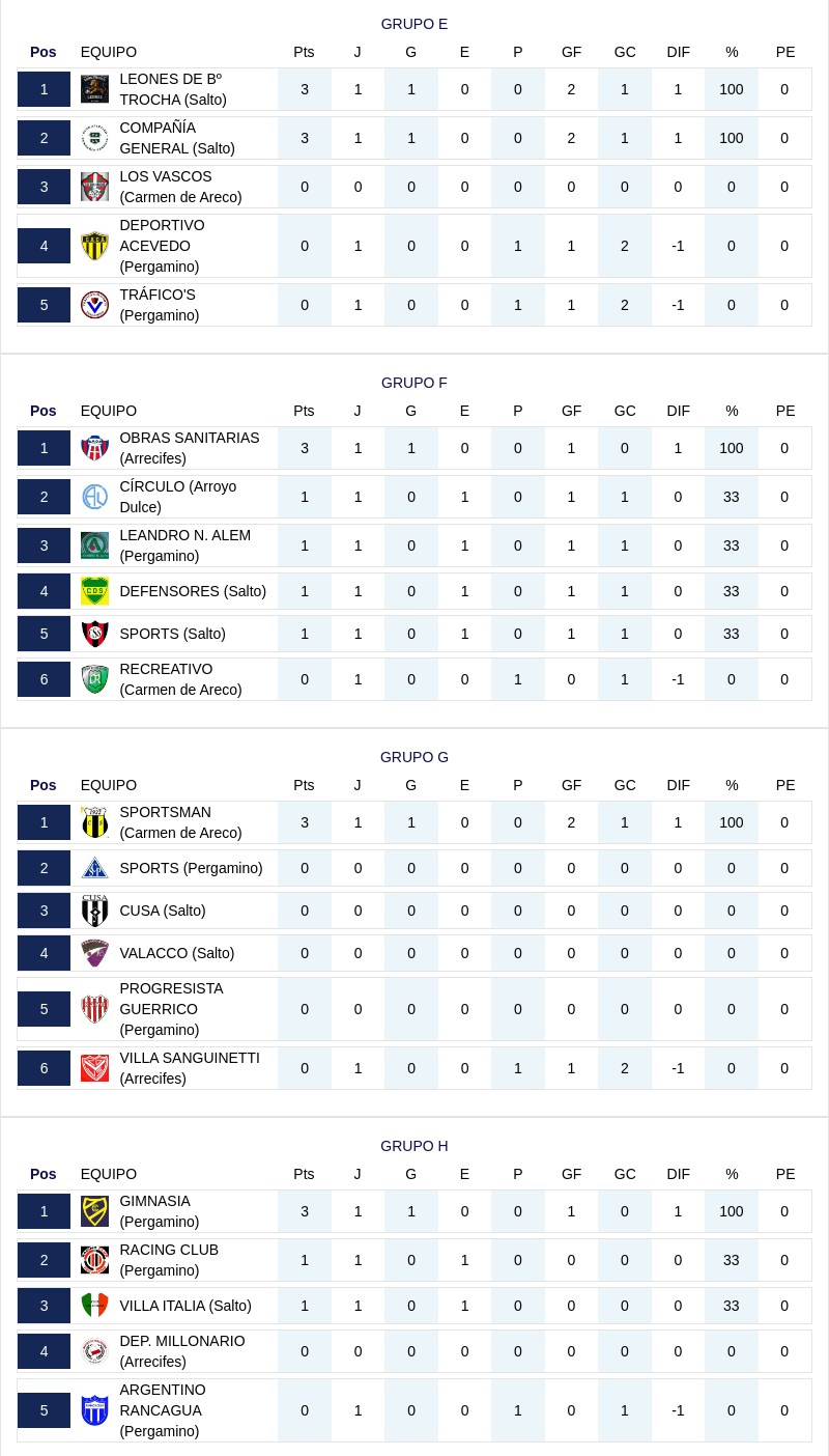 En tanto, Deportivo Millonario comparte la Zona H con Racing, Gimnasia y Rancagua de Pergamino y con Villa Italia de Salto.