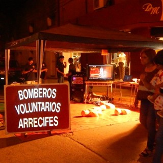 A los negocios con mostradores afuera, vendedores ambulantes, artesanos, músicos y el público en general, se le sumó un stand de los Bomberos Voluntario de Arrecifes enseñando las prácticas de RCP.