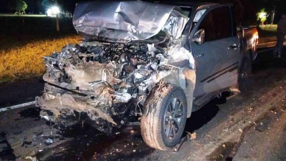 Una camioneta Toyota Hilux impactó violentamente contra la parte trasera de un camión Mercedes Benz con acoplado que circulaba en el mismo sentido.