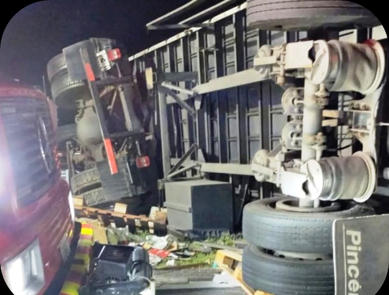 En las primeras horas de la madrugada de este jueves se registró un impactante vuelco de un camión sobre la Autopista 8, en el tramo que une Arrecifes con Capitán Sarmiento, a la altura del puente del río Arrecifes.
