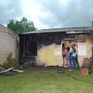 Al parecer, el fuego se inició en el garage abierto de la casa, donde se encontraba estacionada una Trafic que se quemó en su totalidad y luego avanzó hacia el resto de la propiedad, afectando también un local lindero.