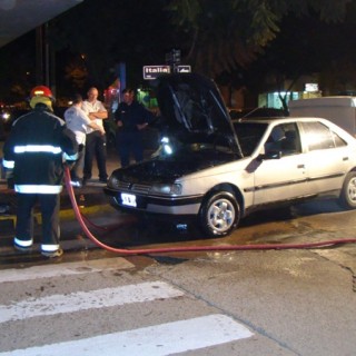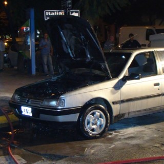 A las 19 de este jueves, se produjo un incendio en un automóvil marca Peugeot 405, el cual se encontraba estacionado en calle Italia, a metros de Avenida Merlassino.