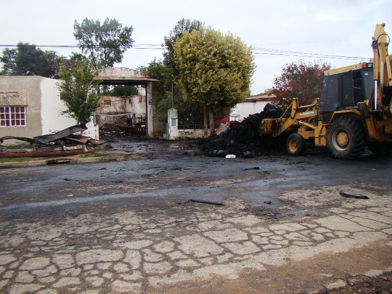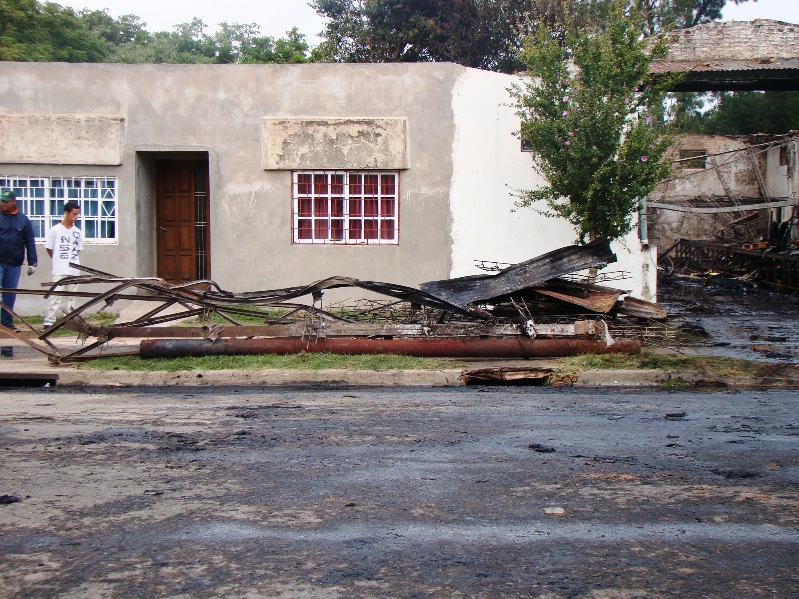 Las pérdidas materiales del galpón, fueron totales, ya que el fuego arrasó con todas las telas y hasta el techo del mismo se vino abajo.