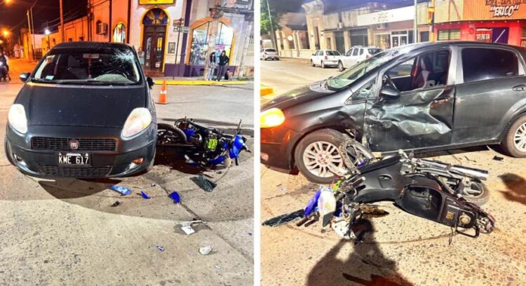 En la noche de ayer se registró un accidente de tránsito en la intersección de Avenida Merlassino y calle Gerardo Risso, en Arrecifes. Por motivos que aún se están investigando, colisionaron un automóvil Fiat Punto de color negro, conducido por un hombre de 33 años, y una motocicleta de 110 cc., también de color negro, conducida por un joven de 18.