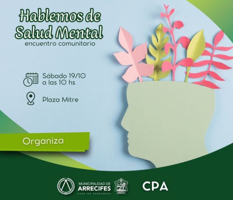 La Municipalidad de Arrecifes, en colaboración con el Centro de Prevención de Adicciones (CPA), invita a la comunidad a participar de la jornada “Hablemos de Salud Mental”, que se llevará a cabo el sábado 19 de octubre a partir de las 10:00 horas en Plaza Mitre.