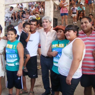 -El intendente Dr. Daniel Bolinaga con toda la familia de quien fuera su empleado y amigo, el Negro Palacios.