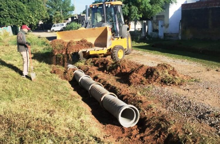 Personal del área de Mantenimiento Vial de la Municipalidad de Arrecifes llevó a cabo trabajos de limpieza de cunetas y colocación de tubos en las calles Pasteur y Julián Centella, en Villa Sanguinetti.