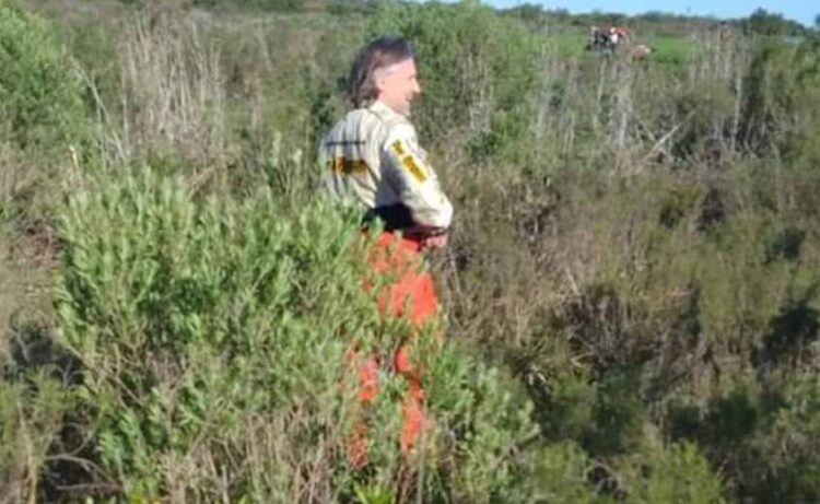 El piloto de la Clase B del TC Litoral, Patricio López, capturó el momento en que el arrecifeño comienza a rastrear entre los pastos el neumático que perdió mientras giraba en Gualeguaychú.
