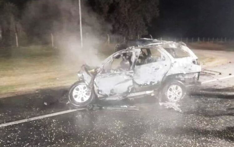 El accidente se produjo cerca de la 1 de la madrugada del lunes, cuando el automóvil que circulaba en dirección Arrecifes–Carmen de Areco impactó de frente contra el camión. La violencia del golpe hizo que el vehículo se incendiara de inmediato.