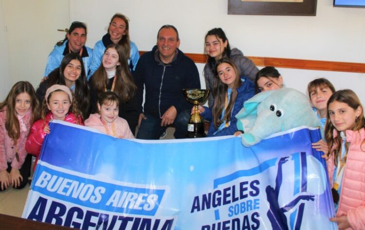 El intendente Javier Olaeta recibió para felicitar, en representación de toda la comunidad, a “Ángeles Sobre Ruedas” y su directora, la profesora Noralí Zaffaroni, por el campeonato obtenido en la Copa América de Patín realizada en nuestro país, de la que participaron con el auspicio de la Dirección de Deportes.