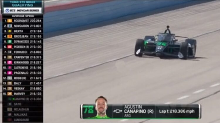 La IndyCar está disputando su segunda fecha del año en Texas, en el óvalo más veloz del mundo. Una experiencia absolutamente desconocida para Agustín Canapino y muy lejana a lo que está acostumbrado a correr.