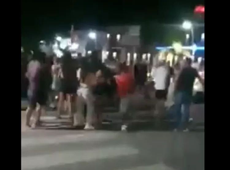 Numerosos jóvenes se trenzaron en una pelea grupal, chicos y chicas, mayores y menores golpeándose; algunos de ellos hasta utilizando armas blancas.