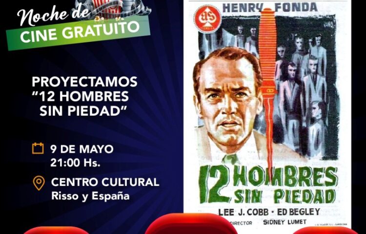 La Dirección de Cultura de la Municipalidad de Arrecifes invita a la comunidad a una nueva noche del Ciclo de Cine gratuito, que tendrá lugar el jueves 9 de mayo a las 21:00 horas en el auditorio del Centro Cultural. En esta ocasión, se proyectará el clásico del séptimo arte “12 Hombres Sin Piedad”, un film en blanco y negro estrenado en 1957 que recibió un premio Óscar.