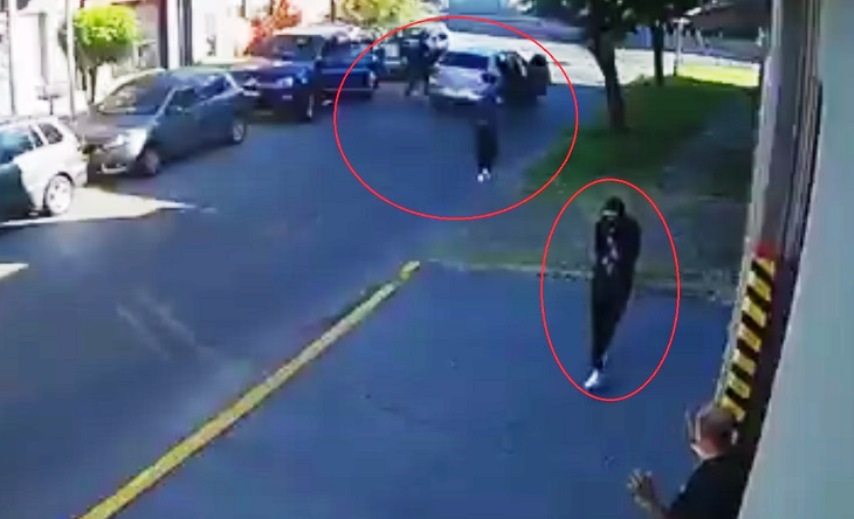El objetivo de los delincuentes era la camioneta que había estacionado una de las víctimas del brutal ataque y todo quedó registrado en cámaras de seguridad del lugar. Allí se ve el arribo de los asaltantes en un Volkswagen Polo Track gris.
