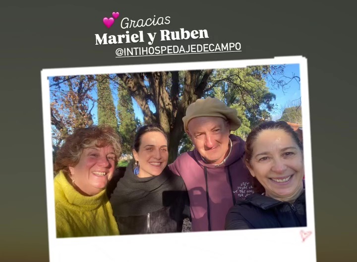 Los anfitriones respondieron con el mismo cariño: “Verlas en una pantalla toda la vida y luego verlas vibrar tan libremente, siendo ustedes, nos permitió compartir instantes mágicos. Nos mostraron su calidez, su Ser que indudablemente trasciende la pantalla…. Son dos hermosas en todo sentido … La tranquera de Inti y nuestros corazones siempre abiertos a recibirlas con este cariño que se tejió aquí!!!! Gracias infinitas por hacernos el honor de haber sido nuestras huéspedes”.
